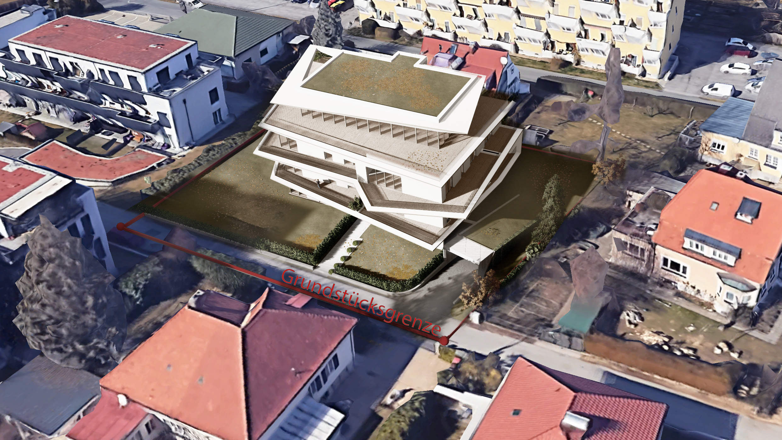 - Flachdach mit extensiver Begrünung und PV-Anlage