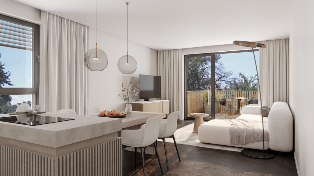 Eigentumswohnungen, die modernes Wohnen in ruhiger Umgebung mit urbaner