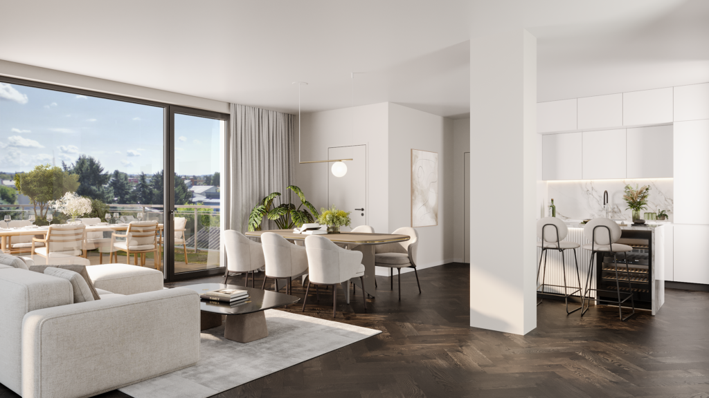 lichtdurchfluteten Wohnräumen, großzügigen Terrassen sowie einer hochwertigen
