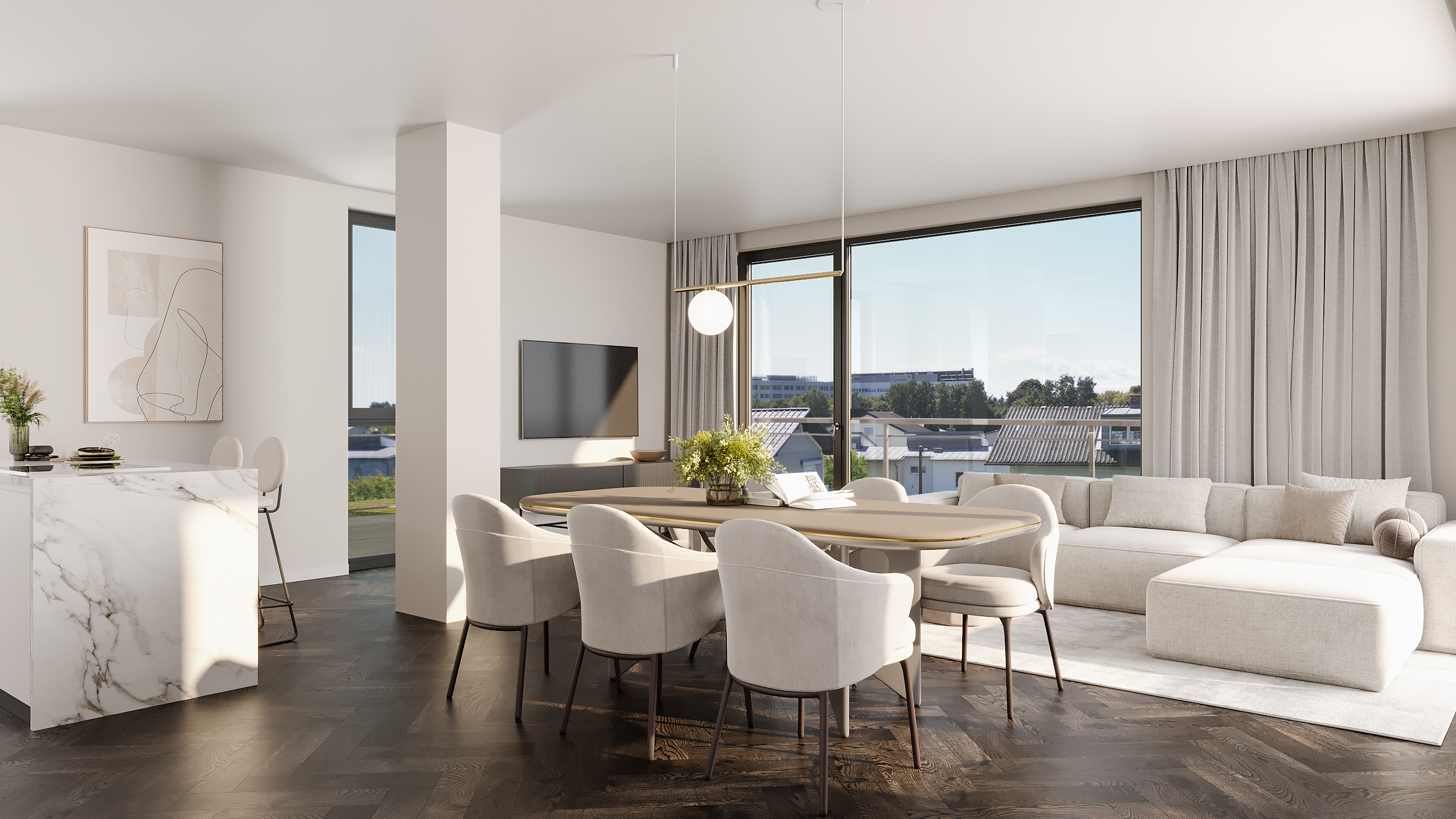 lichtdurchfluteten Wohnräumen, großzügigen Terrassen sowie einer hochwertigen